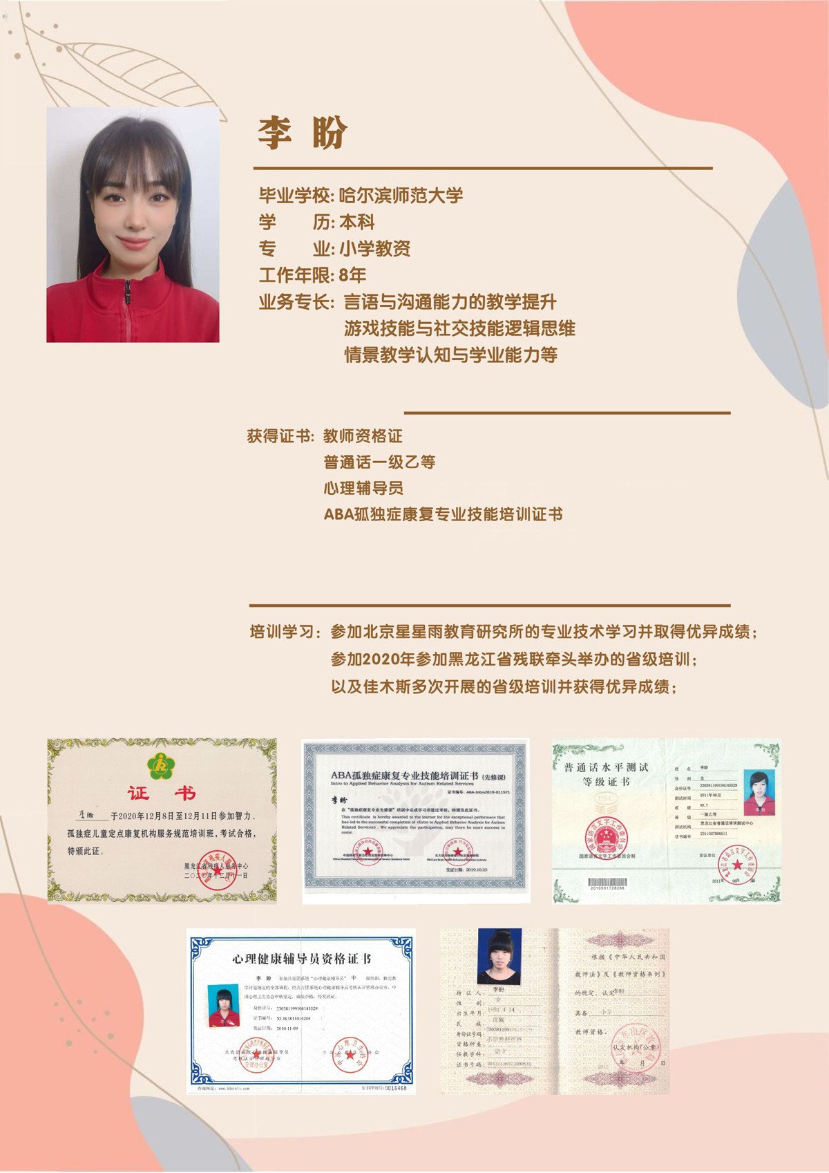 地址:佳木斯向阳区通园巷2号,杏湖壹品楼下(儿童公园里,顺和生鲜超市旁)  电话:18644000458 周老师